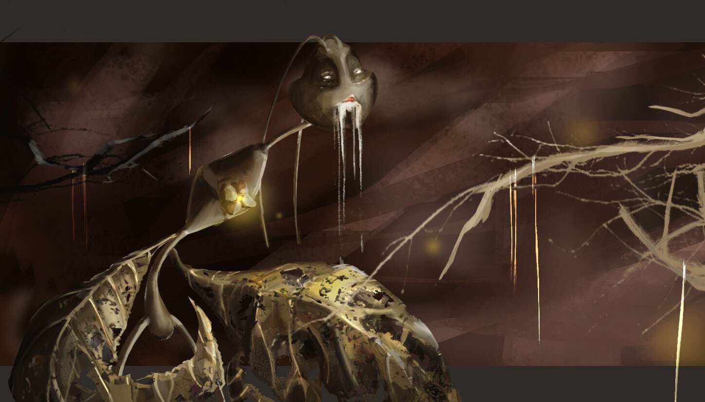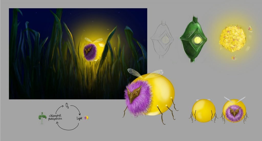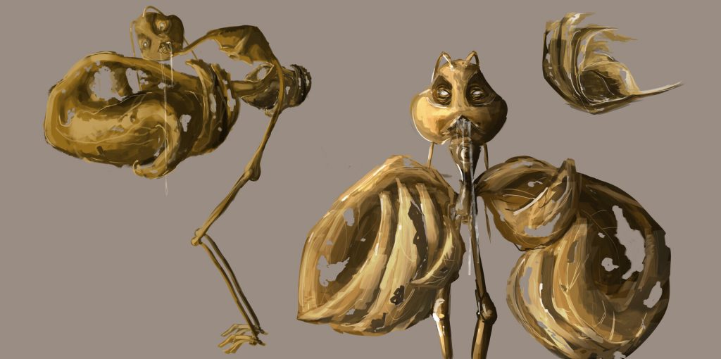 Illustrazione di creature appartenenti ad un unico concept di fantasia con relativi studi del personaggio e dell’ambiente.
