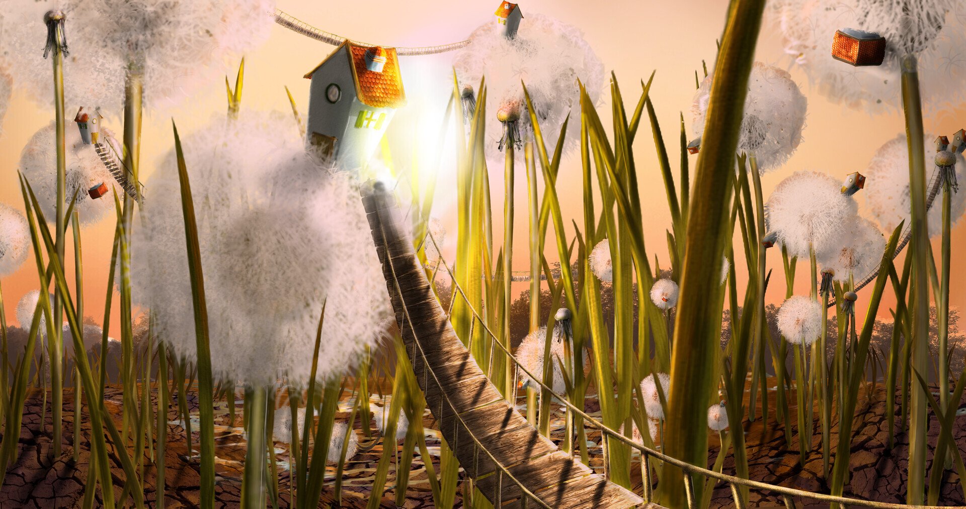 Concept: La vita dei denti di leone ruota tutta intorno al paese e ai suoi tempi, la vita qui è semplice, basta un po’ di brezza notturna perché una casa si stacchi insieme al seme e voli via… è la vita, le luci dalle finestre saluterà accompagnando il suo viaggio.